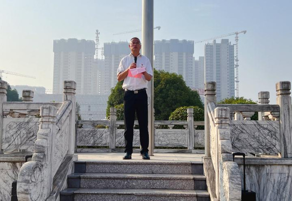 国歌唱毕,农林与服装学院2021级学生韩涛在国旗下发言,并带领全体同学庄严宣誓,声声铿锵誓言诠释我校师生深切的爱国热忱和昂扬的奋斗精神。李五一发表讲话,他强调升旗仪式是一个很好的形式,一是可以倾诉我们对伟大祖国的热爱之情;二是可以展示我们在青春校园的亮丽风采;三是可以表达我们对美好未来的无限憧憬。希望亲爱的同学们,用青春、热血和歌声来赞美祖国,讴歌祖国,祝福祖国!用激情、呐喊和掌声来庆祝国庆,欢度国庆,祈福国庆!为祖国73华诞,放开歌喉,同心祝福。愿我们伟大的祖国繁荣昌盛,日月同辉。