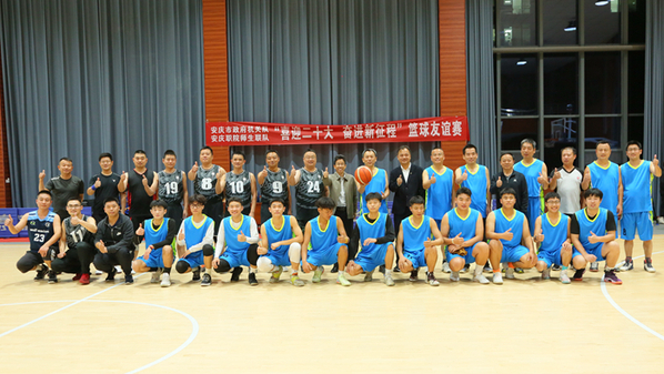 为丰富学生们校园文化生活,10月12日晚,安庆市政府机关队与安庆职业技术学院师生联队开展了篮球友谊赛。赛前,副市长唐厚明率市政府机关队全体队员与安庆职业技术学院党委书记童宏葵、校长毕明生、副校长程飞、党委委员李五一和师生联队全体球员、裁判员合影留念。