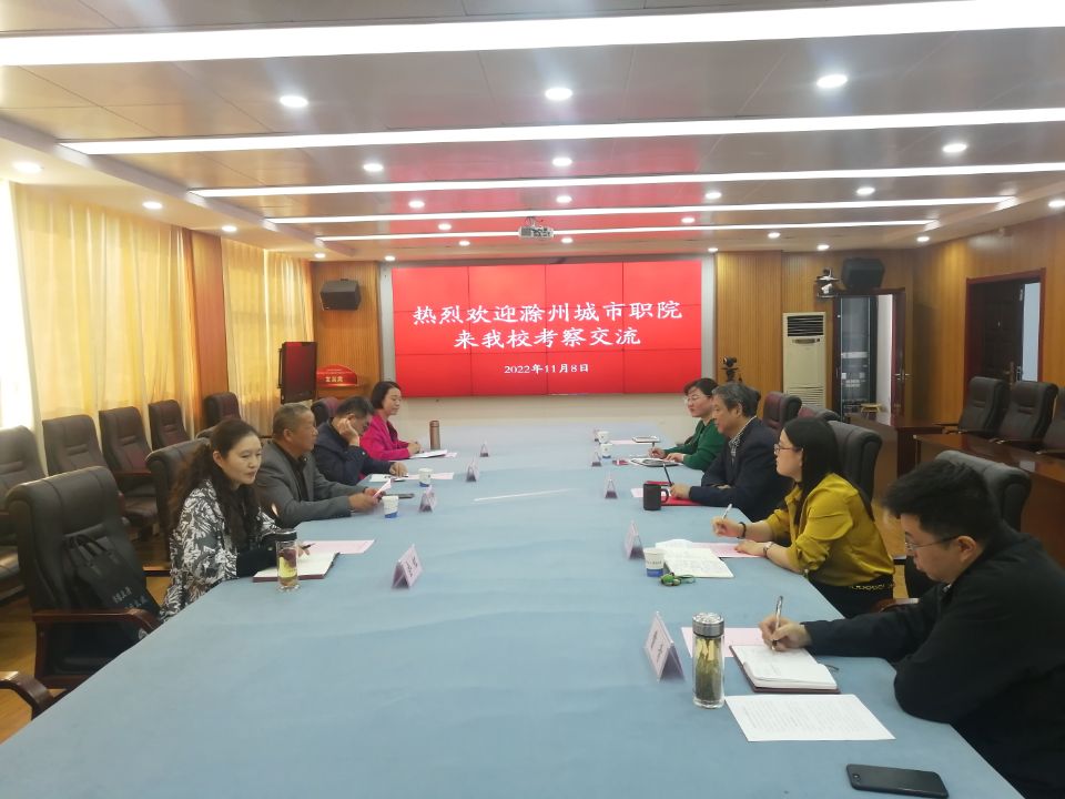 11月7日,滁州城市职业学院党委委员施向阳一行4人来校考察交流社会培训等工作。党委副书记李克让主持会议。管理服务学院、教务处、继续教育学院(培训部)相关同志参加了会议。