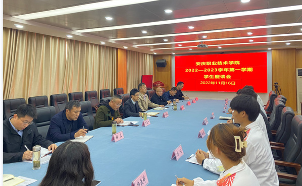 为全面深入了解学生思想动态和学习生活状况,收集学生对学校各项工作的意见和建议。11月16日下午在我校行政楼四楼第二会议室召开学生座谈会。校党委副书记、校长毕明生,校党委委员、副校长程飞出席会议并讲话。校党委委员、统战部部长李五一主持会议。教务处、学生处、后勤保障处、保卫处、图文信息中心等部门负责人和18名学生代表参加座谈。