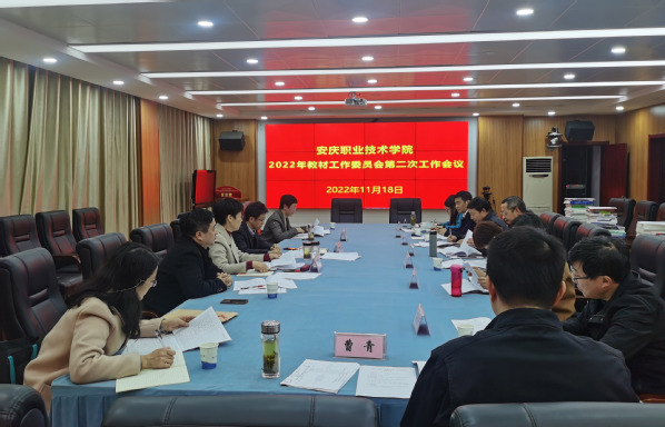 为深入贯彻落实教育部《职业院校教材管理办法》,进一步加强教材的选用和管理工作,11月18日下午,我校在综合办公楼第二会议室召开教材工作委员会会议暨2022-2023学年第二学期教材选用审议会。校长、校教材工作委员会主任毕明生教授出席会议并讲话。校党委委员、教材工作委员会副主任高润霞教授主持会议。校党委委员、教材工作委员会副主任吴何珍教授,校教材工作委员会成员及教务处相关人员参加会议。