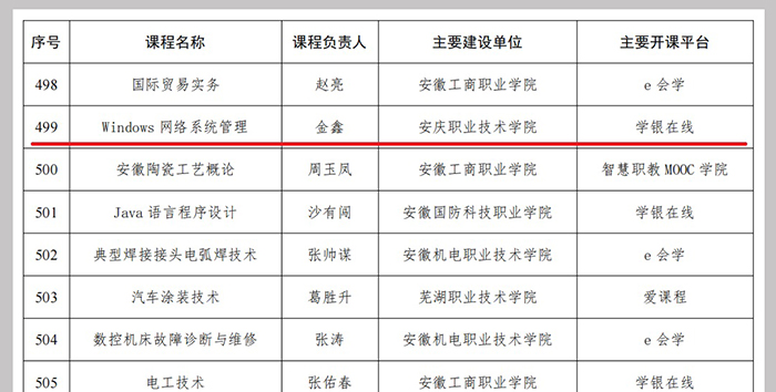 12月15日,教育部在官方网站发布《关于2022年职业教育国家在线精品课程遴选结果的公示》,我校金鑫老师主持申报的《Windows网络系统管理》课程入选2022年职业教育国家在线精品课程,取得了我校在国家精品课程建设上的重要突破。