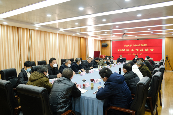 毕明生在总结学校2022年工作时指出,学校实施党建引领、五育并举、人才强校、品牌打造、教学改革、基础建设“六大工程”,推进升格本科、专业建设、育博引博、放权赋能、效能提升、形象提升“六大行动”,各项事业取得喜人成绩。一是强化引领,坚持党对学校工作的全面领导。牢记为党育人、为国育才的政治使命,不断提高政治判断力、政治领悟力、政治执行力。二是应对风险,在变局中开新局。做到了校园疫情管控“严而有爱”、精准有效,“线上线下”教学随时切换,学生“离校返乡”井然有序。三是打造品牌,招生工作取得新突破。招生规模、录取分数线双双实现历史性突破,办学实现跨越式发展。四是奋勇争先,在国家级赛道上取得骄人成绩。不仅承办国家级大赛,而且在国家级竞赛舞台上和国家级奖项上,捷报频传。五是守正创新,在教学改革上和人才培养上硕果累累。出台了“三教”改革实施方案,深入推进教师、教材和教法改革。六是对标对表,在专业建设上迈出新步伐。完善了《2022级高职专业人才培养方案的指导意见》;在本科专业建设上,推出了6个特色专业重点打造。七是聚焦短板,在队伍建设上取得新成效。公开招聘录用新进教师43人,引进高层次人才教授、博士各1人,2人晋升教授。八是加大投入,在基础条件上有了大改善。获批政府专项债项目建设资金,用于校园基础设施建设和实验实训条件改善,共涉及19个建设项目。九是再接再厉,在服务地方上展现新作为。通过推进集团化办学,深化校企合作、校地合作,毕业生安庆就业率继续攀升;社会培训和科技服务都上了一个新台阶。十是善做善成,在对外宣传上彰显新亮点。以“书记喊你来反诈”“夜话”“在一起”等系列活动,彰显了学校始终坚持以学生为中心的办学理念,学生工作的“走心”做法受到社会各界和各大主流媒体的广泛关注。