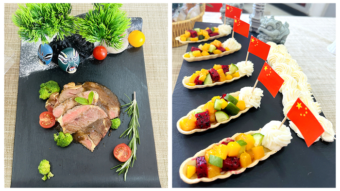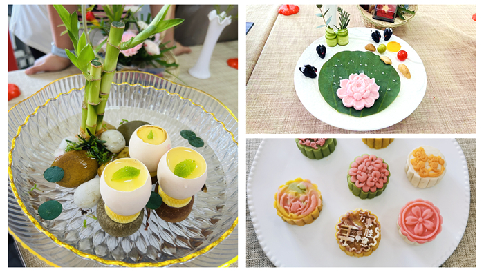 农林与服装学院以“繁荣昌盛 食美天下”为主题的食品展,由食品质量与安全专业和园艺技术专业的师生们耗时一周共同打造完成。食品专业展出的作品《荷塘月色》、《安庆印象》、《鱼戏莲间》,将新中国成立75周年主题、两大专业技能、中国传统文化、安庆地方特色等完美融合;园艺技术专业展出作品分为传统与现代两大模块:传统六大花器为基地,选用不同的花材,采用剑山和撒固定基板,对中国传统插花中的不同花器予以完美展示。现代插花作品在传承的同时,也从历史长河中汲取智慧,融入现代科技的创新精神,通过现代插花展现引领时代的潮流。该学院两大专业师生将第一课堂与第二课堂深度结合,协同育人,突出了校园美育文化的同时,也增强了同学们专业实践能力。