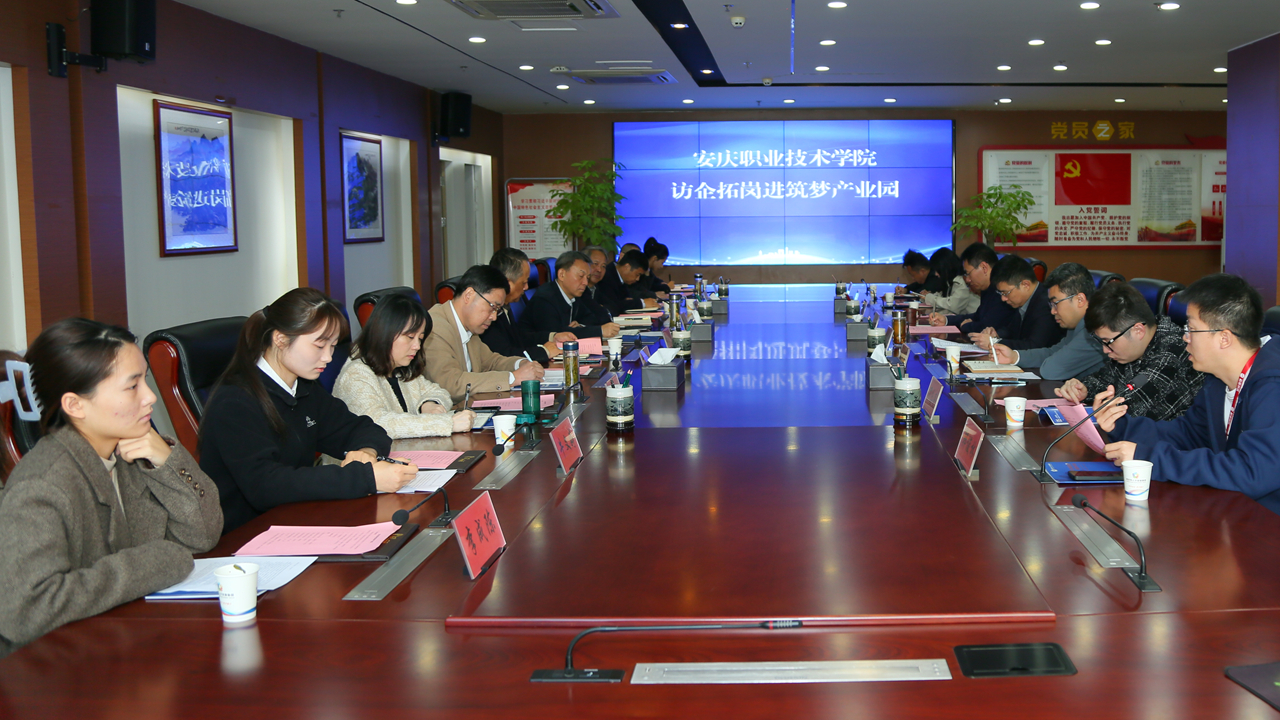 11月8日上午,校党委书记童宏葵率信息技术学院、现代商务学院以及招就处主要负责人,前往安庆市筑梦新区开展访企拓岗、供需对接、实习走访等活动,深入了解企业发展需求和毕业生就业现状,探索校企合作新路径,为发展新质生产力培育急需人才,助推毕业生高质量就业。校党委副书记李克让一同参加,并主持座谈会。安庆市人才集团党委书记、董事长王中群,党委副书记、副总经理胡耀洲和产业园副总经理罗骁陪同。