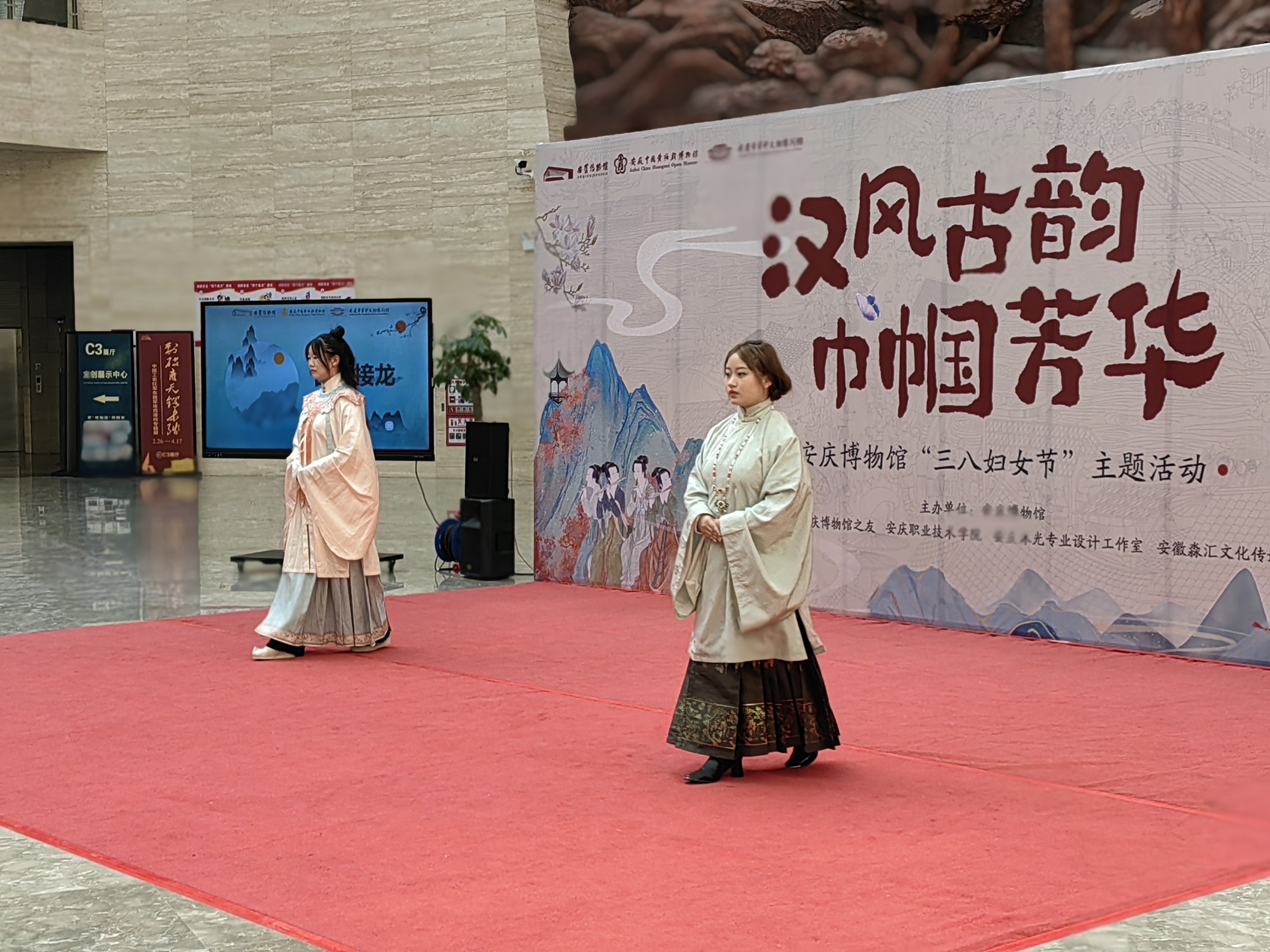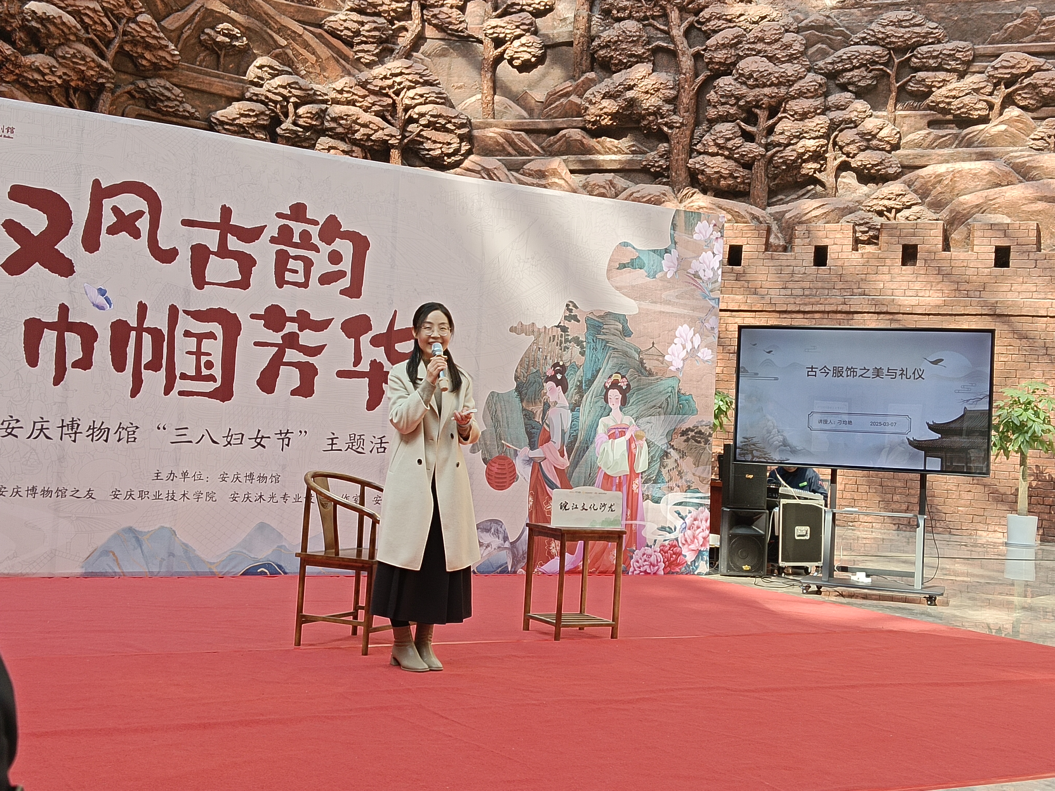 为庆祝三八国际妇女节,弘扬中华优秀传统文化,我校农林与服装学院服装专业教师刁均艳应安庆博物馆邀请,主讲《古今服饰之美与礼仪》专题讲座。活动特邀我校10余名学生身着历代汉服参与礼仪情景展演。
