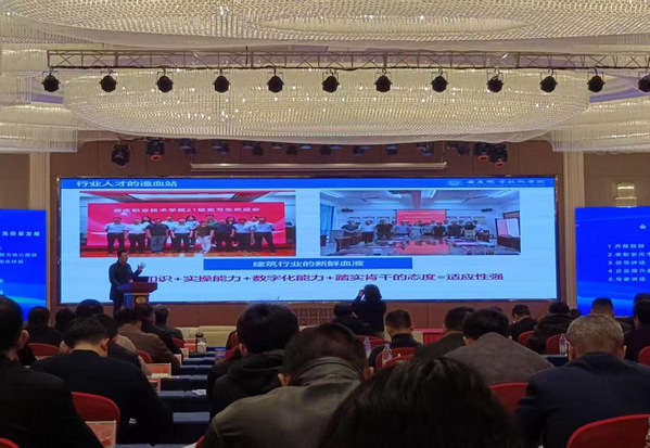 会上,我校建筑工程学院金飞老师代表学院做题为《产教融合谋发展,校企协同育英才》的推介报告,他从“我们有什么?我们能做什么?”两方面,介绍了我校建筑工程学院的专业特色、团队优势和实训条件,以及该院如何优先为本地行业企业提供人才支撑,满足行业企业不同培训需求,以及校企联合开展新技术新工法攻关等。金飞老师的推介与交流,得到与会企业的高度关注和积极回应。
