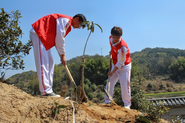 随后,在村两委的带领下,志愿服务队前往植树点开展植树活动。大家分工协作,挥锹铲土、扶苗填坑、提桶浇水,每一个环节都井然有序。一棵棵新栽的树苗迎风挺立,为平岭村的生态环境增添了一抹新绿,也寄托了校村携手共建美好家园的共同愿景。