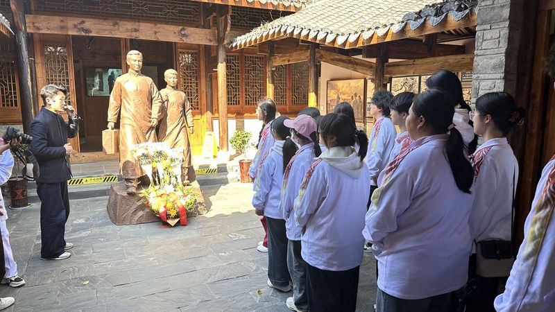 活动当天,师生们怀着崇敬的心情步入读书处。馆内陈列的珍贵文物、历史照片和详实史料,生动展现了陈乔年、陈延年短暂而又波澜壮阔的一生。这里见证了他们从进步青年成长为坚定马克思主义者的思想蜕变,是传播革命火种的重要阵地。