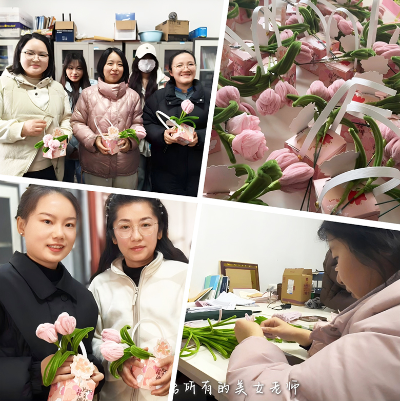3 月 7 日,学院团总支组织学生为全体女教师送上节日祝福。学生亲手制作祝福贺卡、“粉色康乃馨”和定制文创礼品,向坚守在教学、管理一线的女教师表达敬意。“您是指引我们前行的星光!”贺卡上的话语让教师们深受感动。活动中,女教师代表表示:“收到学生们亲手做的花,比收到任何礼物都开心。这不仅是一份节日祝福,更是学生们对我们辛勤付出的认可。”