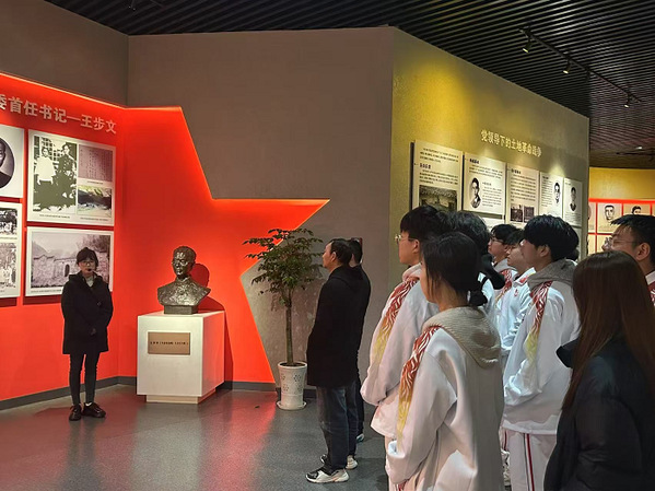 随后,在工作人员带领下,全体人员参观烈士纪念馆。大家在一件件实物、一张张照片、一篇篇烈士事迹前驻足,感受先烈为革命事业抛头颅、洒热血的伟大壮举,领悟先烈不怕牺牲的大无畏精神。从辛亥革命到抗日战争,从解放战争到抗美援朝,无数英烈从‘浴血奋战’到‘迎来曙光’,在‘艰苦奋斗’后,取得‘最终胜利’,铸就了这座苦难的岁月丰碑。”