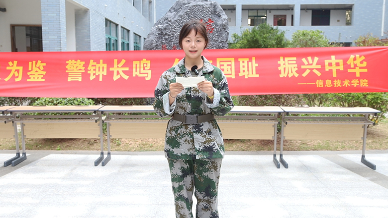 随后的主题演讲环节。2025级4名新生代表围绕“勿忘国耻・吾辈当自强”展开演讲。同学们结合自身感悟与成长经历,讲述先辈抗战的英雄壮举,抒发对祖国的深厚感情,一致表示要继承先烈遗志,刻苦学习、奋发图强,为国家的繁荣发展贡献青春力量。“历史不能遗忘,自强才能强国”一名学生的发言道出了大家共同的心声,进一步激发了现场同学的爱国热情与责任担当。