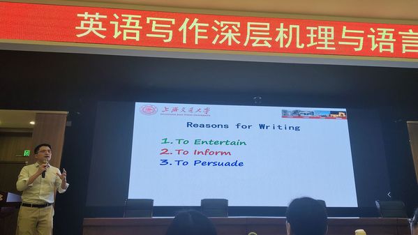 报告的主题为《英语写作深层机理与语言表达》,刘兴华博士结合职业院校的学情特点,从英语写作的目的、英语写作的格式、英语写作的语气等三个方面进行了阐述,强调英语写作应根据不同目的、不同对象、不同内容而进行创作。报告深入探讨成功英语作文的底层逻辑,揭示隐藏在字里行间的表达奥秘,对中英文思维差异、写作过程中的认知机理提出独到而深刻的见解。