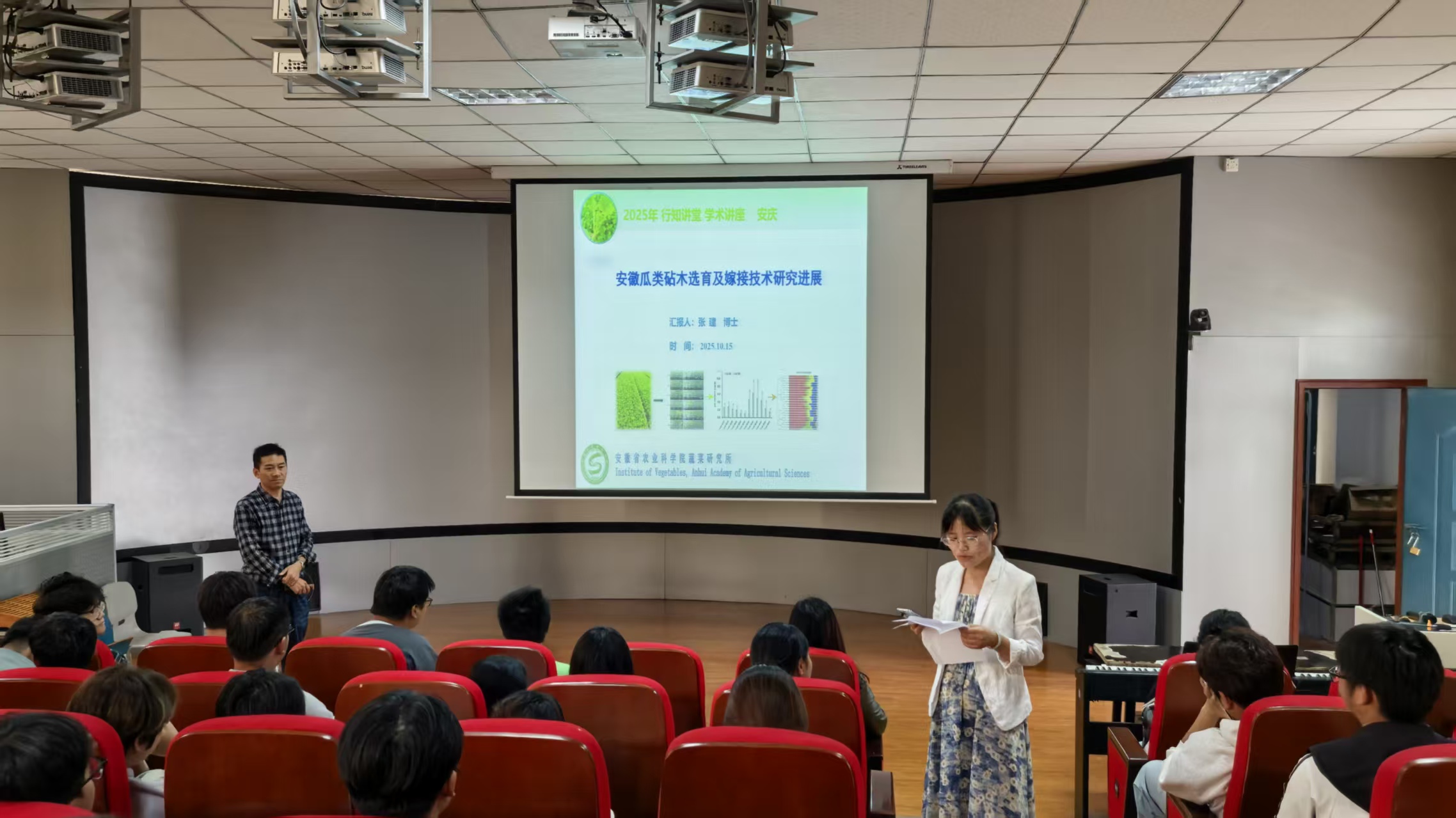 张建从安徽瓜类产业现状出发,围绕“砧木选育的重要性”“特色砧木品种开发”和“嫁接技术实践应用”三个主要方面进行了系统讲解。内容兼具前沿性与实用性,帮助在场师生进一步理解相关技术的应用前景与发展趋势。