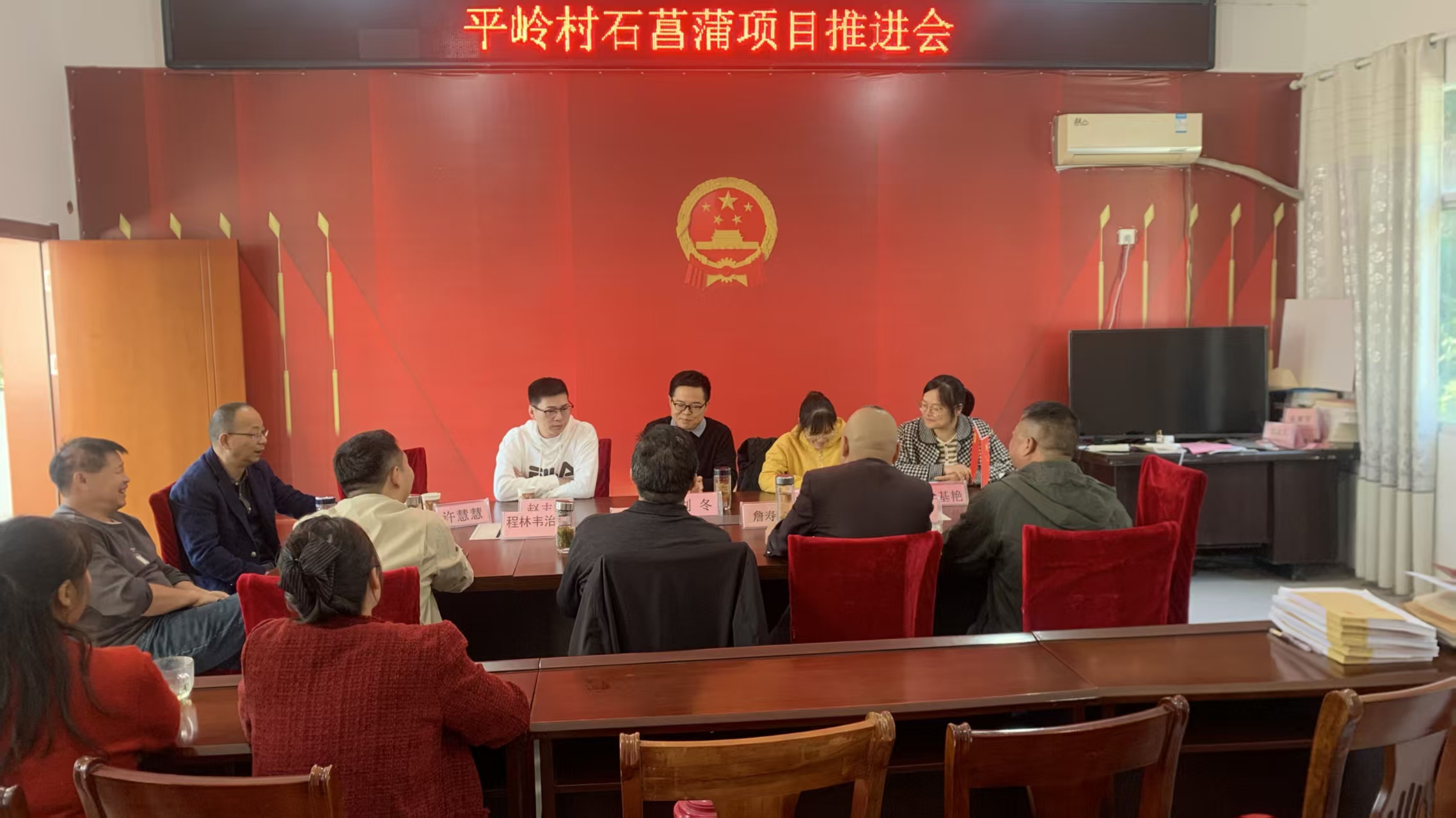 实地种植后,双方在村部召开了石菖蒲种植项目推进会。技术服务团队负责人介绍了项目背景与目标;团队骨干教师就水肥管理、病虫害防治等关键技术作了专题辅导。在交流研讨环节中,双方聚焦技术细节与市场前景,共同规划了产业标准化发展路径。
