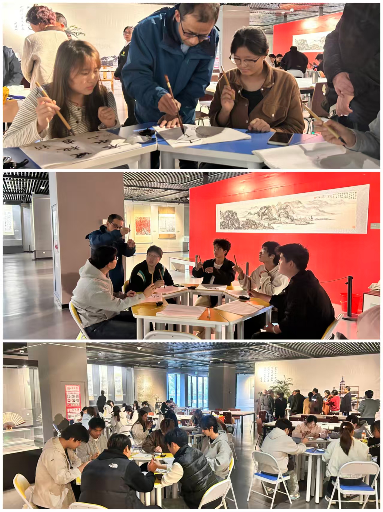 书法创作研习环节由安徽省书法家协会会员朱丙夫老师现场指导。宜秀区老年大学书法班学员围绕中华“礼”文化主题现场创作,我校学生在专业指导下开展书法研习,以笔墨传递文明礼仪,展现传统文化时代魅力。非遗拓印体验区考古专家深入讲解瓦当的历史背景与文化内涵,阐释传统拓印技艺的传承意义。学生在亲手实践中感受文物复刻的乐趣,体悟非遗技艺背后精益求精的工匠精神。