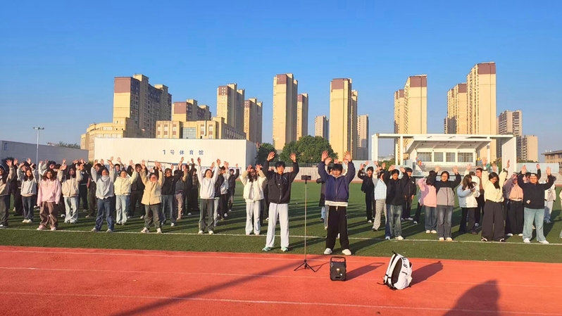 清晨,各班级同学准时集结于运动场地,在团学干部的带领下,伴随着舒缓悠扬的音乐,凝神静气、循序渐进地完成“两手托天理三焦”“左右开弓似射雕”等八段锦动作。抬手、转身、屈膝、拉伸,每一个招式都舒展流畅,既展现了传统功法的柔美韵味,又透着青春学子的蓬勃朝气。晨光洒在同学们认真的脸庞上,整齐划一的动作成为校园清晨最亮眼的风景线。