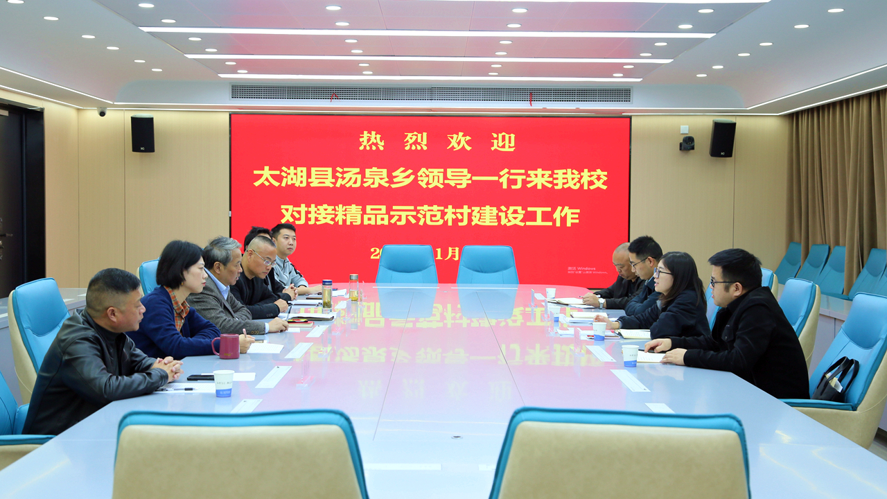为推动太湖县汤泉乡龙潭寨村精品示范村建设,11月3日,太湖县汤泉乡党委副书记、乡长杜丽芳一行赴我校开展对接交流。校党委副书记李克让出席并讲话,校党委委员、统战部长李五一主持对接会。