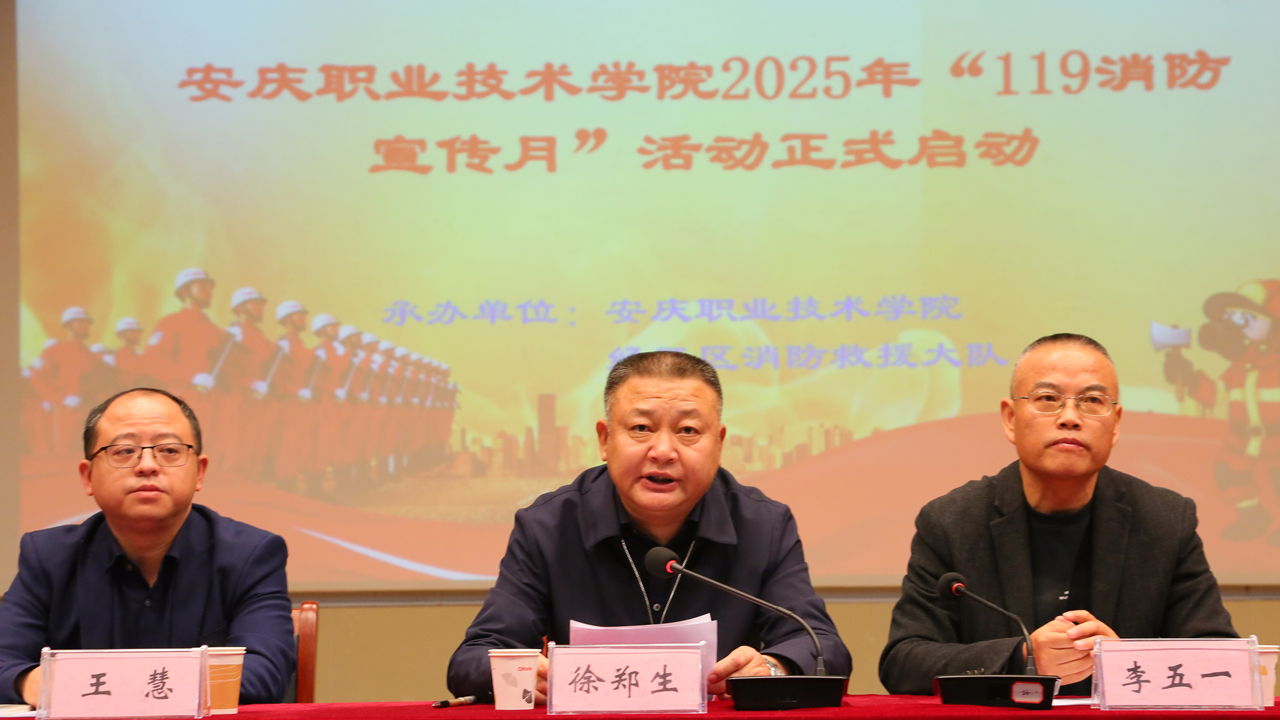 启动仪式上,徐郑生为活动致辞。李五一宣布活动启动,标志着我校“11.9消防宣传月”正式启动。