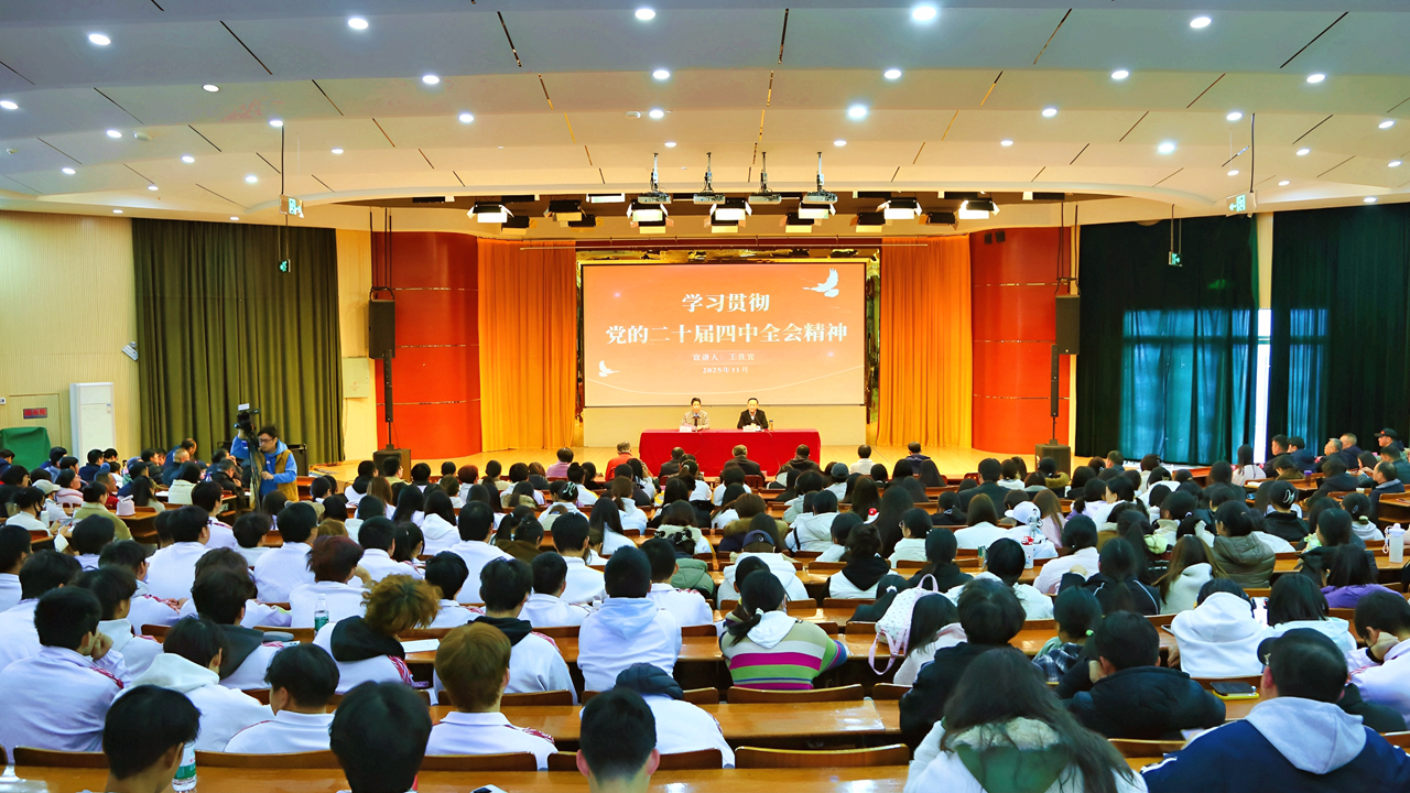 按照市委统一部署,11月19日,学习贯彻党的二十届四中全会精神市委宣讲团到我校开展宣讲。市委宣讲团成员、市委教体工委书记、市教体局局长王良宜作宣讲报告。市属高校、市直教体系统干部及师生代表参加宣讲报告会。我校150余名师生代表聆听了报告会。