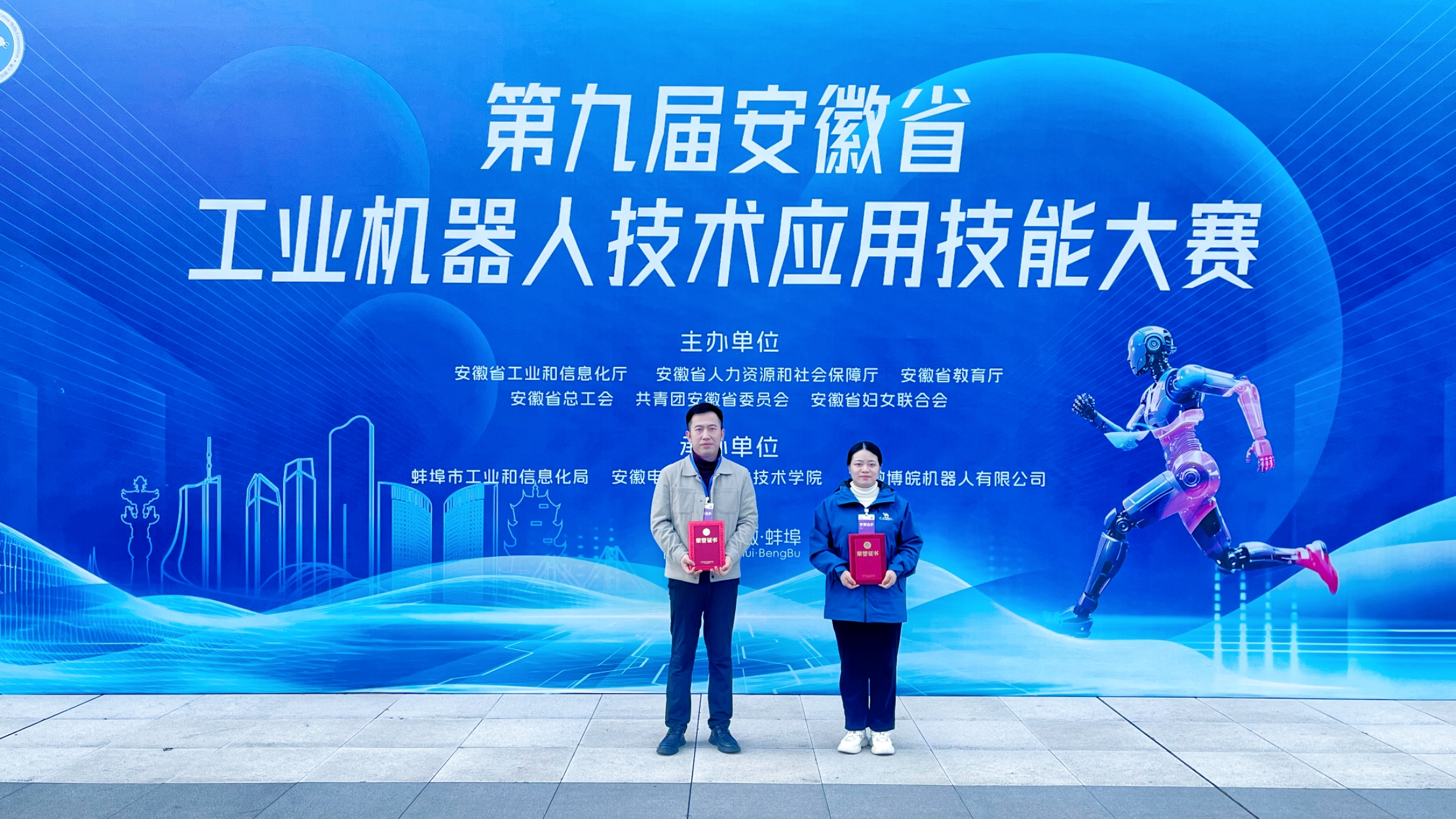 11月21日,由安徽省经济和信息化厅、省人力资源和社会保障厅、省教育厅等七部门联合主办的第九届安徽省工业机器人技术应用技能大赛在蚌埠安徽电子信息职业技术学院闭幕。我校机电工程学院师生再创佳绩,姚兆凤、张啸川两位老师荣获教师组二等奖。许凯华、王涛两位同学获得学生组三等奖。