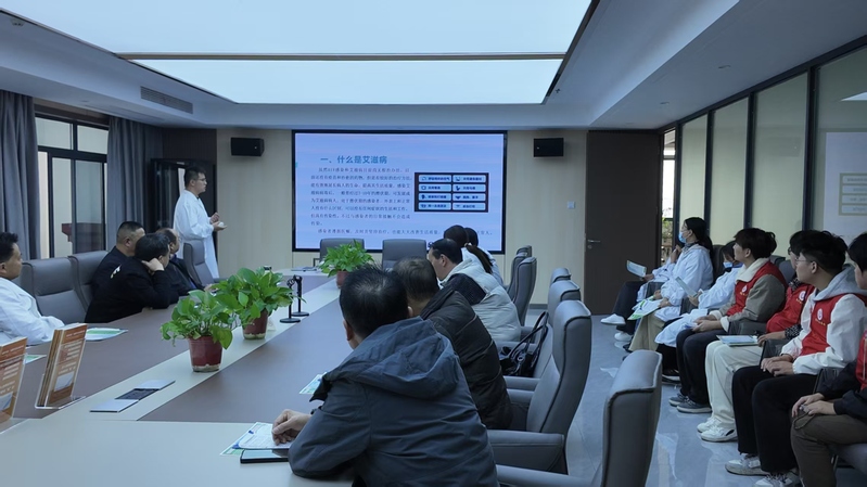 在老峰卫生院,我校青年志愿者与该院医务人员、辖区居民共同聆听了由王伟医生主讲的专题讲座。讲座以“社会共治,守正创新,终结艾滋”为主题,详细阐述了艾滋病的定义、传播途径、症状、预防措施及治疗方法,宣传了国家的相关政策。王伟提醒大家增强自我保护意识,洁身自爱,预防艾滋病毒感染。