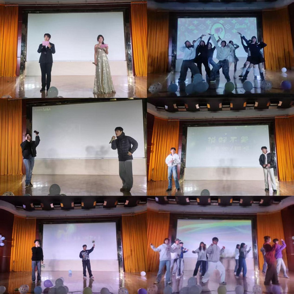 汇演在歌曲《我们的时光》中拉开帷幕,经典话剧《雷雨》演绎中,同学们用真挚表演再现文学魅力。随后,优雅的《兰亭序》古风舞蹈与《李白》等流行歌曲串烧相继登场,实现了传统韵味与现代节奏的巧妙衔接。《等你下课》《飘向北方》等歌曲引发全场共鸣,而充满活力的街舞和集体舞则将现场气氛推向高潮,充分展现了青年学子的多元才华与蓬勃朝气。