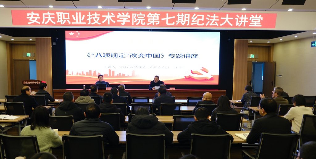 为深入贯彻落实全面从严治党要求,持续深化深入贯彻中央八项规定精神学习教育成果,2025年12月19日,安庆职业技术学院举办中央八项规定及其实施细则精神专题讲座,邀请市纪委常委、监委委员徐华三进行专题解读。全校副科及以上干部、专职辅导员、学生干部代表参加学习。