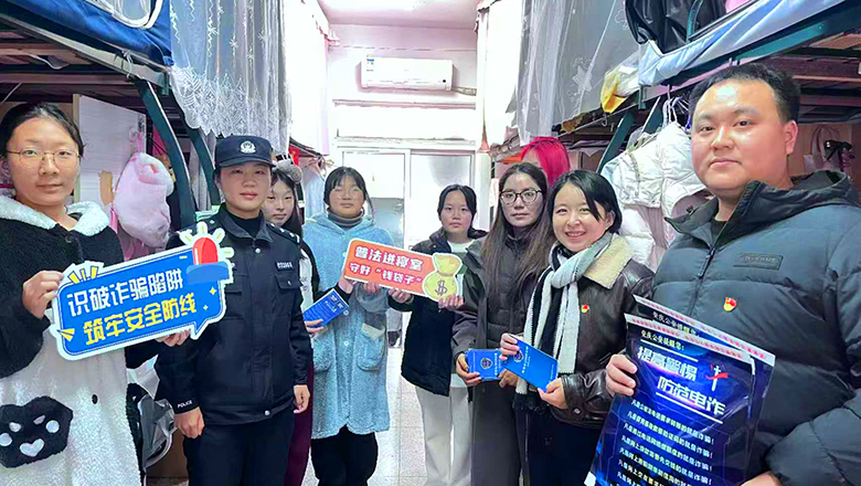 党总支与公安力量联合,将普法与反诈宣传阵地延伸至学生宿舍。民警与教师携手采取贴近学生的宣传模式,凝聚了校园反诈合力,有效提升了学生的法治意识和防骗能力。