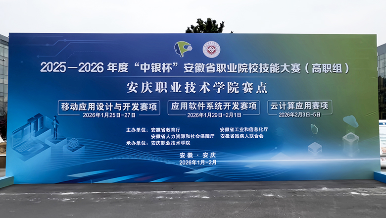 1月26日,2025至2026年度“中银杯”安徽省职业院校技能大赛(高职组)“移动应用设计与开发”赛项在我校开赛。本次比赛由安徽省教育厅、安徽省工业和信息化厅、安徽省人力资源和社会保障厅、安徽省残疾人联合会联合主办。