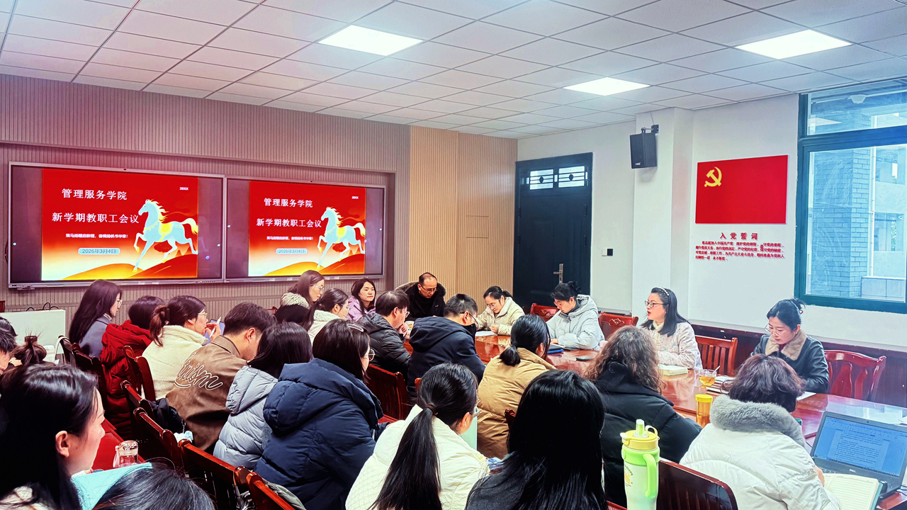 3月4日,管理服务学院召开新学期开学工作会议,该院党总支书记、院长陈颖主持会议,全体教职工参加。