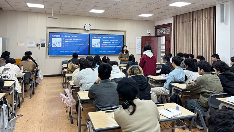 沙龙首个环节为“主题班会现场观摩”。2025级专职辅导员胡泊老师以《凝心聚力,共筑优良班风学风》为题进行展示。他创新采用“算账”方式,引导学生自主核算“经济账”“学业账”与“前途账”,引导学生通过具体账目反思规则与自律的价值,并共同制定班级公约,实现了从说教到启发的转变。2024级专职辅导员沈娟老师则聚焦校园消防安全,结合真实案例,深入剖析火灾成因,系统讲解宿舍防火“九个严禁”与安全用电规范,并现场演示灭火器使用与火场逃生技巧,强化了学生的消防安全意识与应急能力。