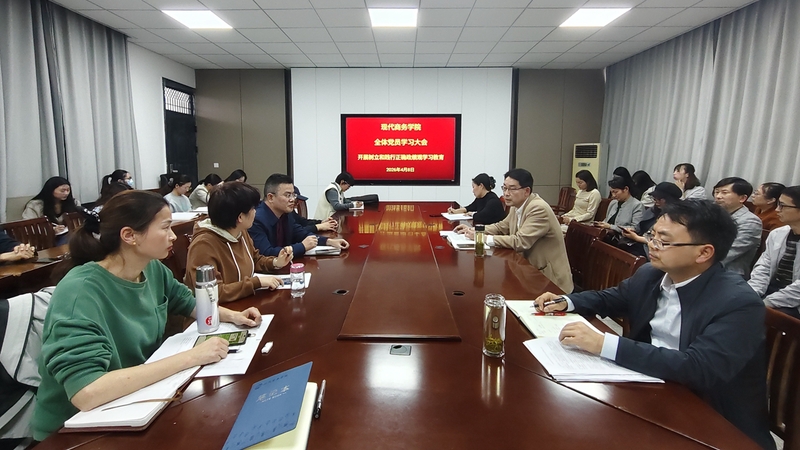4月8日下午,现代商务学院党总支在党员活动室开展树立和践行正确政绩观学习教育。该院党总支书记金启胜主持学习,全体党员参加。