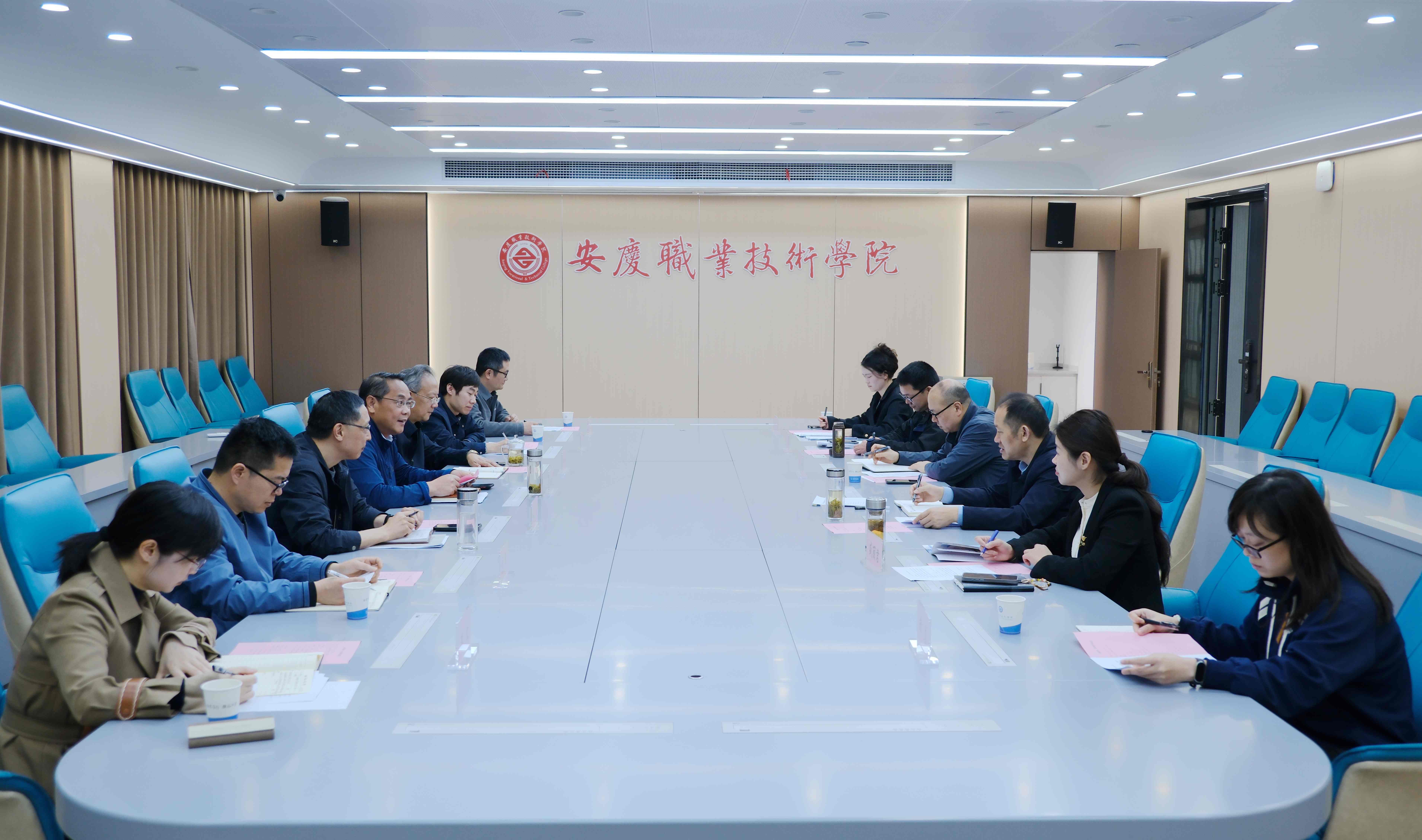 4月16日上午,安庆市科技局局长鲁长江一行六人来我校座谈交流。校党委书记潘功发,党委委员、副校长谭维奇出席座谈会。校企合作办、科技处、农林与服装学院、建筑工程学院相关负责人参加座谈。