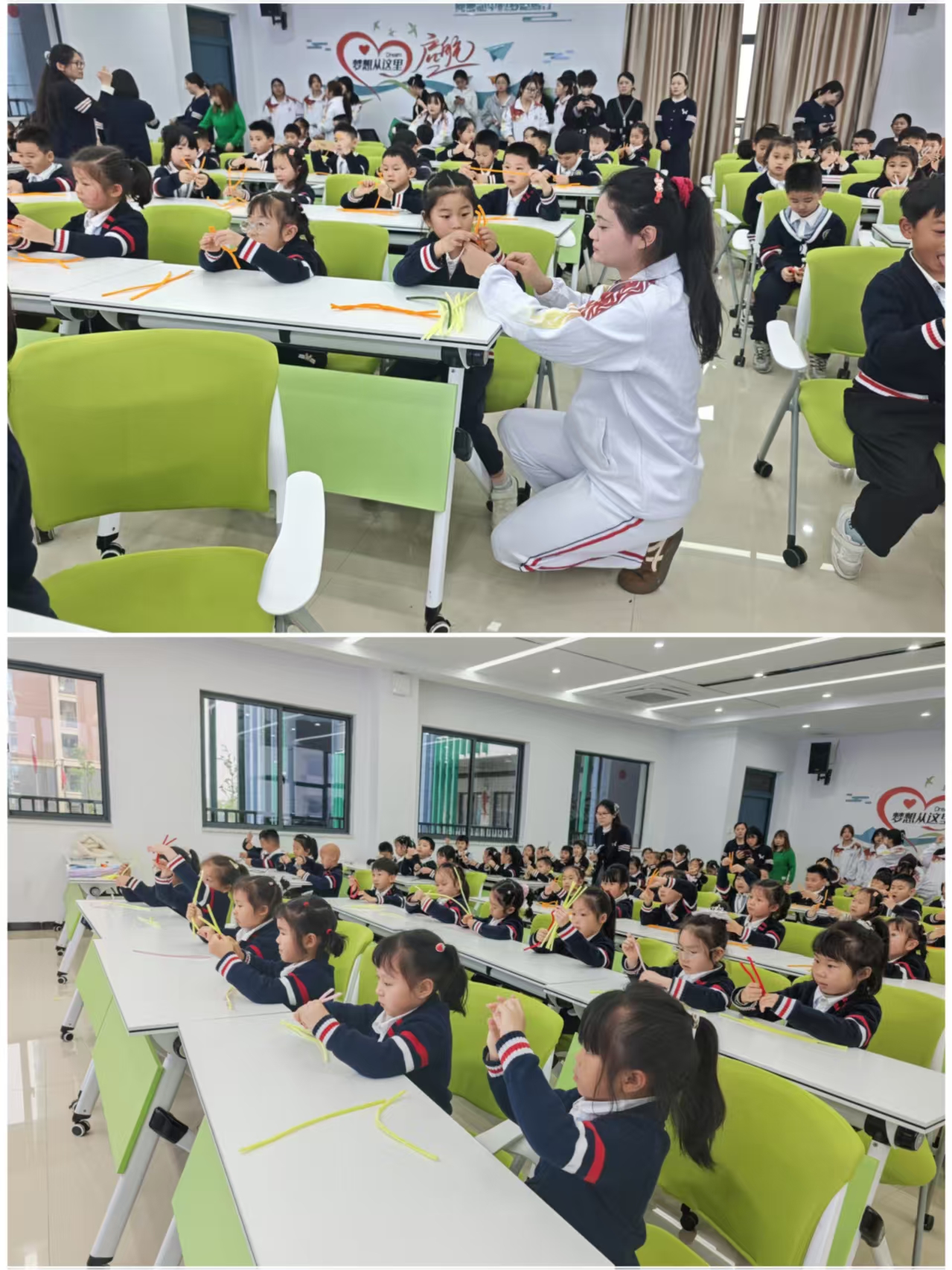 在学校双创楼204教室。管理服务学院学生带来《中华小戏迷》《声声慢》等舞蹈表演,赢得阵阵掌声。随后,早期教育专业的志愿者手把手教小朋友用扭扭棒制作兔子戒指,大家互相展示作品,现场欢声笑语不断。活动中,该专业师生将儿童发展规律、游戏设计与互动引导等专业知识融入每个环节,确保活动兼具趣味性与教育性。本次活动是专业建设与第二课堂深度融合的生动实践。相关专业学生在志愿服务中提升了综合素养,实现了知识技能与育人实践的有效衔接。幼儿园老师表示,此次活动在孩子们心中种下了探索科技、亲近自然、向往职业的小种子。管理服务学院将继续推动专业教育与第二课堂互促共进,为服务地方经济社会发展贡献力量。