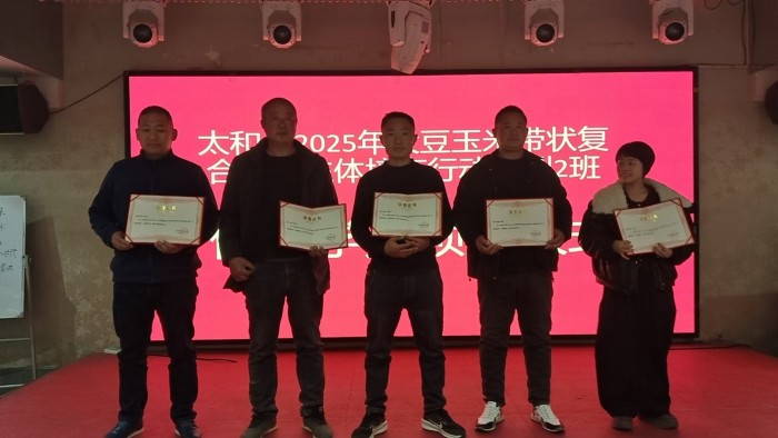 为深入贯彻“稳玉米、扩大豆”战略部署,加快大豆玉米带状复合种植技术规模化推广,筑牢粮食安全根基,12月9日我校承办太和县2025年大豆玉米带状复合种植主体培育行动培训班圆满结业。