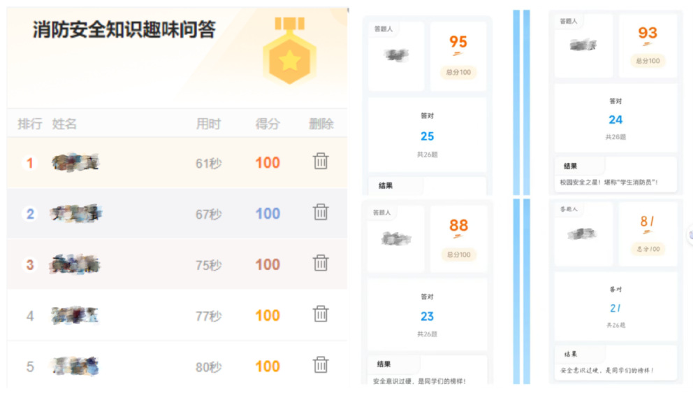 为了巩固前期消防安全宣传效果,学院依托线上平台开展消防安全知识趣味问答,测试题目紧密结合校园生活实际,涵盖防火、灭火、逃生等多个方面,形式活泼有趣。广大师生踊跃参与,在寓教于乐的答题过程中,进一步加深了对消防安全知识的理解与记忆,实现了从“要我学”到“我要学”的积极转变。