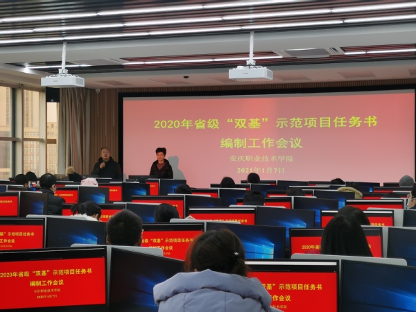 1月7日上午,我校在1号教学楼1+X证书考培室召开2020年省级“双基”示范项目任务书编制工作会议,统筹安排安徽省高等学校省级示范基层教学组(教研室)、教学示范课任务书编制工作相关事宜。副校长谭维奇出席会议并讲话。获准立项的3个示范基层教学组织(教研室)和59门教学示范课负责人及有关人员参加会议。
