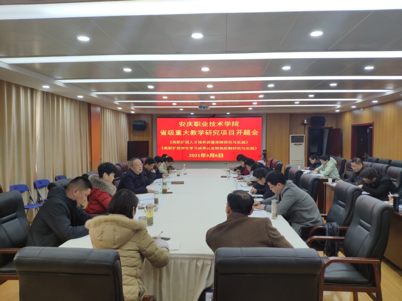3月6日上午,我校在综合楼第二会议室召开“高职扩招学生学习成果认定转换研究与实践”、“高职扩招人才培养质量保障研究与实践”两个省级重大教学研究项目开题报告会。校长毕明生教授、副校长谭维奇教授出席会议并发言,两个课题组的全部成员参加了会议。