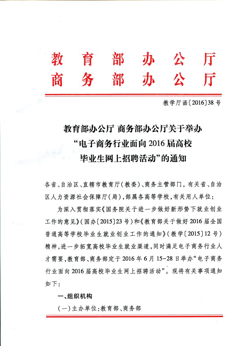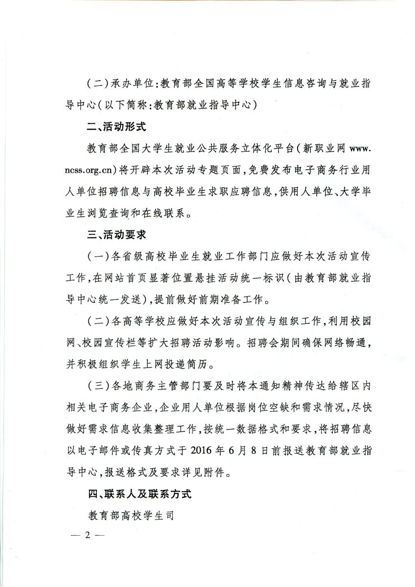 关于举办电子商务行业面向2016届高校毕业生网上招聘活动的