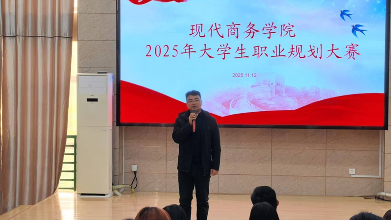 为深化生涯教育内涵、强化就业指导实效,11月12日下午,现代商务学院2025年大学生职业生涯规划大赛院级选拔赛在316教室隆重举行。本次大赛以“筑梦青春志在四方,规划启航职引未来”为主题,旨在引导学生科学规划职业发展路径、提升就业竞争力,促进个人成长与行业需求的精准对接。经过前期班级初选与学院评审,7名优秀选手脱颖而出,为现场师生呈现出一场兼具思想深度和实践价值的精彩角逐。