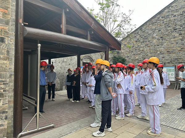 活动中,现场项目负责人从项目规划、技术工艺、材料选择等方面进行专业解读。在重点保护建筑“严凤英故居”前,张工结合建筑图纸,详细介绍了木构梁柱修复、砖雕构件补配的施工技巧,强调“传统工艺与现代材料的平衡是保护项目的核心”。学生们围绕“如何在修复中保留历史信息”“现代消防系统如何与古建筑结构兼容”等问题积极提问,现场交流氛围热烈。