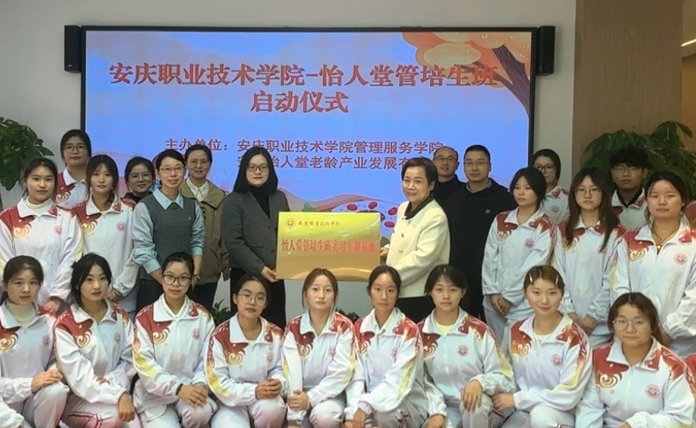 安庆职业技术学院-怡人堂管培生班签约仪式顺利完成,校企双方将在人才培养、课程开发、实习实训、就业推荐等方面开展全方位的合作,共同打造智慧健康养老服务与管理专业人才培养的示范项目。