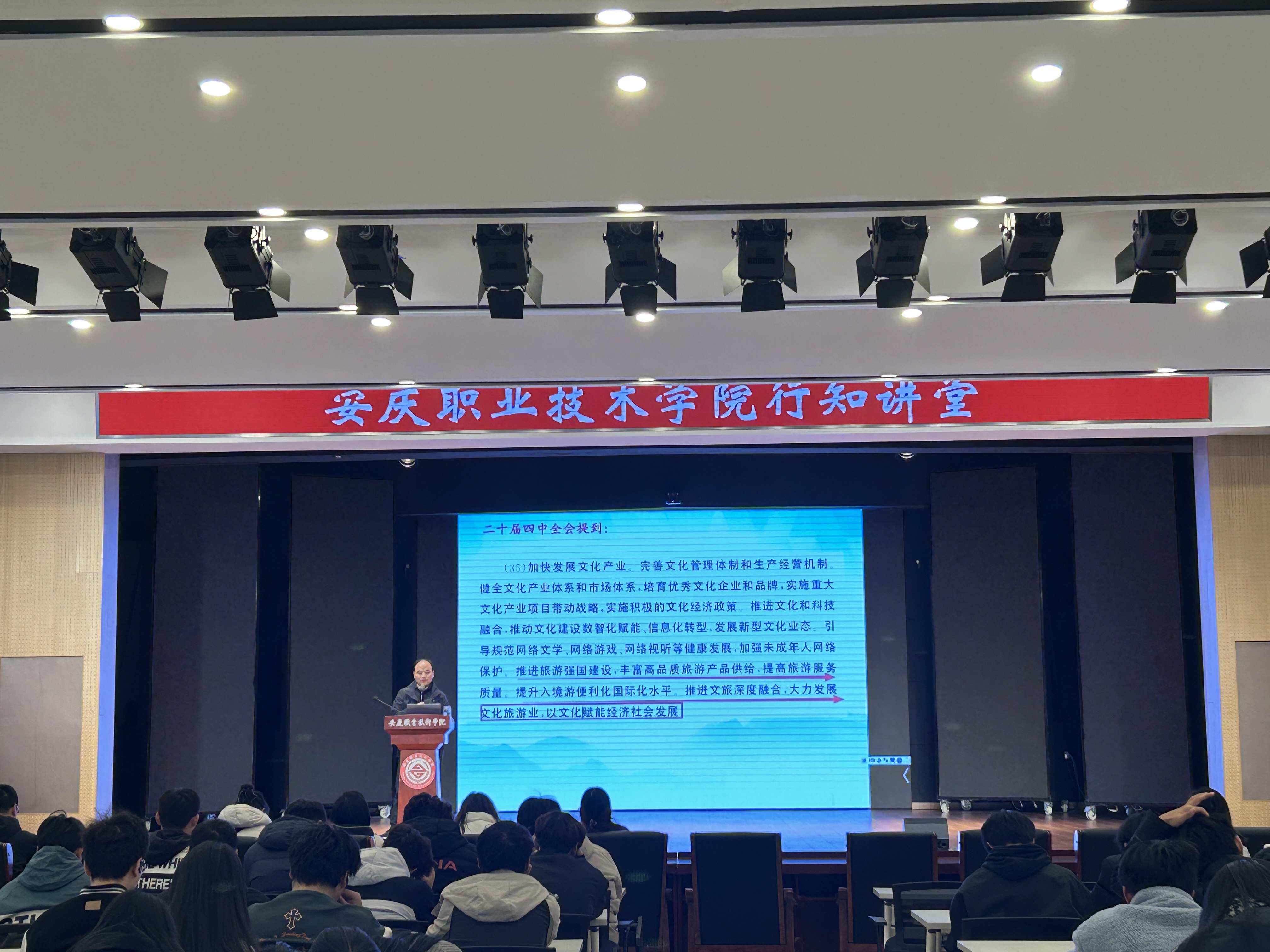 2025年11月19日,安庆职业技术学院在一号实训楼幼儿实训大厅举办“行知讲堂”学术讲座,特邀安庆师范大学朱磊教授作《深化文旅融合,推动安庆文旅产业高质量发展》专题报告。2025级旅游管理专业全体学生及相关教学团队教师共100余人参加了本次讲座。