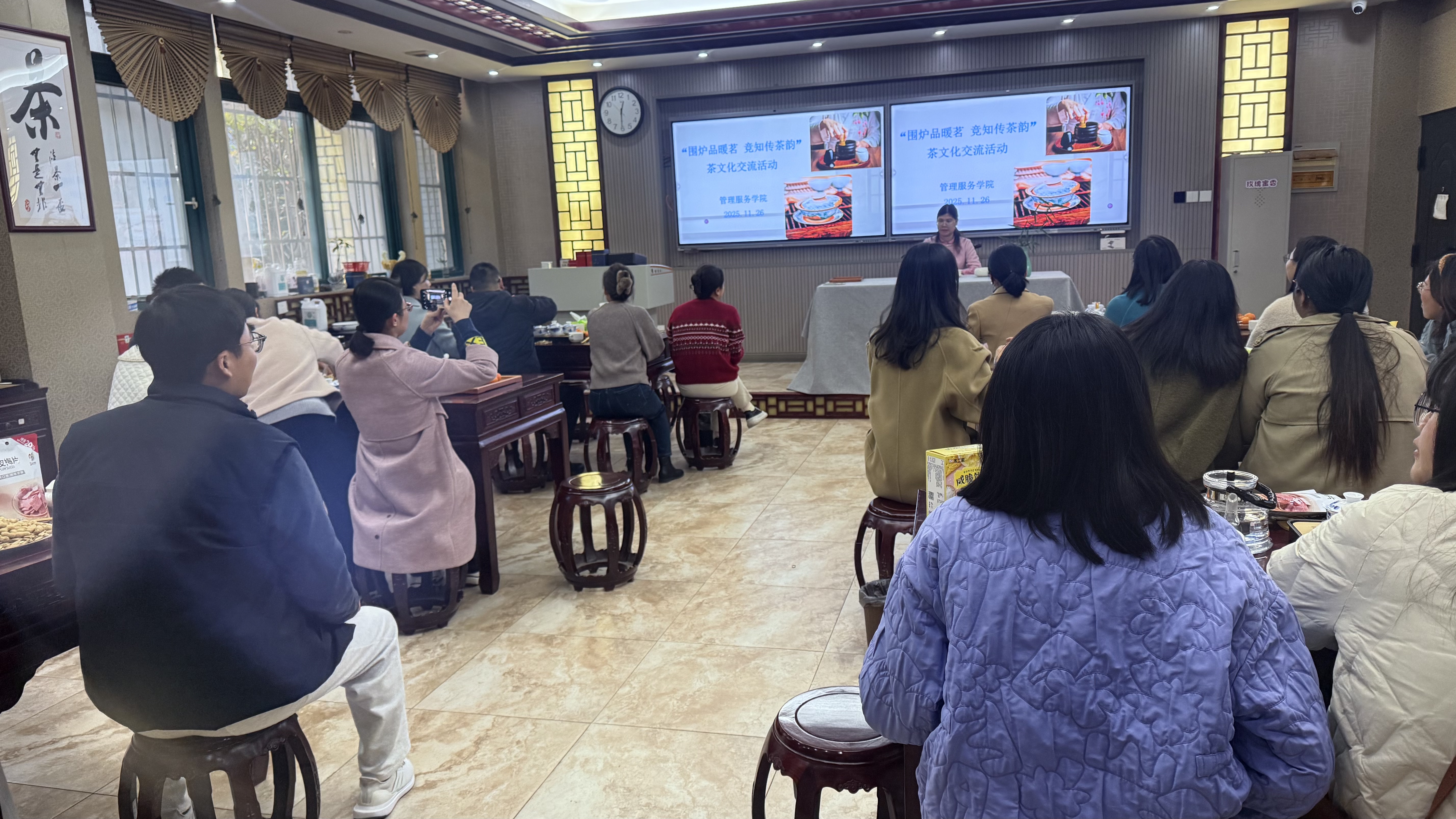 11 月 26 日下午,管理服务学院工会主办的 “围炉品暖茗,竞知传茶韵” 茶文化交流活动,在学院二楼茶艺室温情启幕。活动以茶为媒,融合知识性与趣味性,为教职工带来一场沉浸式的传统文化体验。