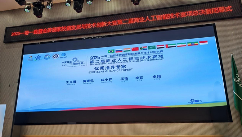 11月13日至16日,2025一带一路暨金砖国家技能发展与技术创新大赛之第二届商业人工智能技术赛项总决赛在成都工业职业技术学院成功举办。来自中国、孟加拉国、哈萨克斯坦、泰国、阿富汗、苏丹共和国、加蓬、喀麦隆、印度尼西亚、巴基斯坦、新加坡、科特迪瓦12个国家的225名选手参与竞赛。经过激烈比拼,我校陈小祥、王艳老师指导的王丛丛、程一鸣、王丽同学获得一等奖,陈小祥、王艳老师获得优秀指导教师称号,学校获优秀组织奖。