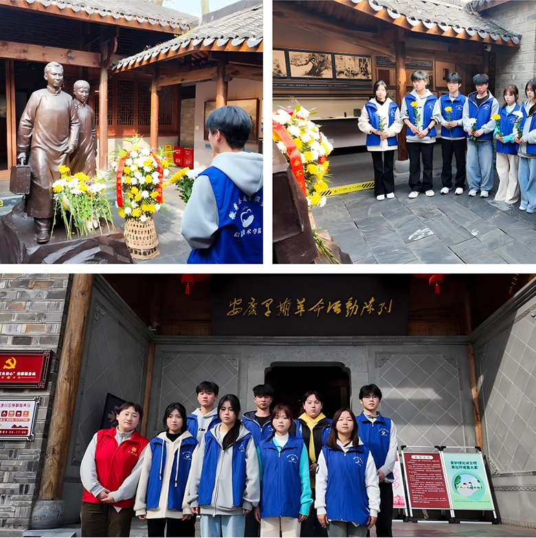 宣讲结束后,志愿者们分三组同步开展服务。在社区帮扶一线,队员们走进独居老人与老党员家中,送上宣传材料,用通俗语言讲解党的政策与雷锋精神,倾听老人心声,传递青年关怀。在怡康养老院,志愿者们与工作人员对接后,为老人们讲解疾病预防、用药安全等健康知识,发放科普手册并解答疑问,随后陪伴老人聊天谈心,真挚的关怀温暖了每一位老人的心田。在安庆早期革命纪念馆与“二陈”读书处,志愿者们通过瞻仰珍贵文物、聆听生动讲解,重温了革命先辈的奋斗足迹。这堂“行走的思政课”让他们深受触动,在随后的心得分享中,大家纷纷表示要从红色历史中汲取奋进力量,进一步坚定了理想信念与青年担当。