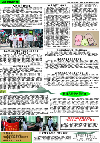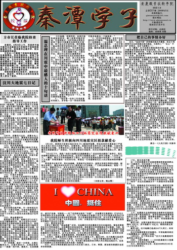 6月初,由我院学生自己组稿、自己编辑、自己设计、自己排版的团学报纸《秦潭学子》第一期出版印刷。