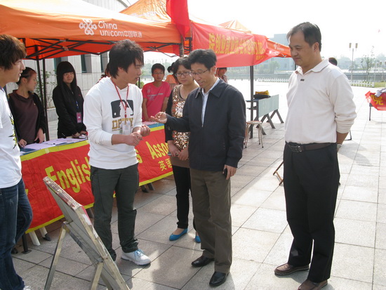 毕明生副院长在学生处(团委)负责人及相关老师的陪同下察看了招新现场。毕院长毕明生副院长询问了相关学生团体的发展现状、日常活动的开展、拟招会员人数等问题,饶有兴趣的观看了一些团体的特色表演。他还对院级学生团体活动的开展、学生团体的发展提出了建设性意见,并对前来报名的同学们寄予了殷勤的期望。