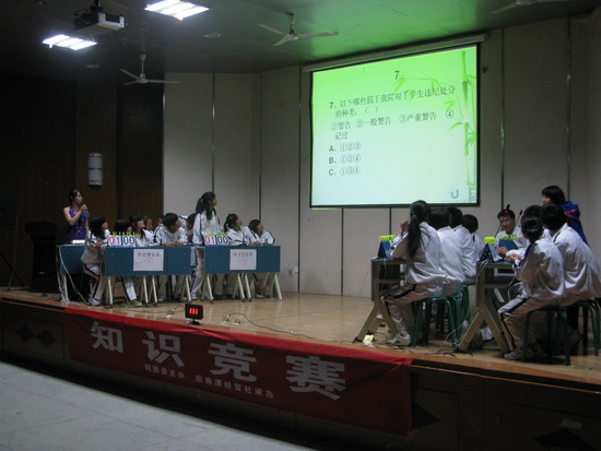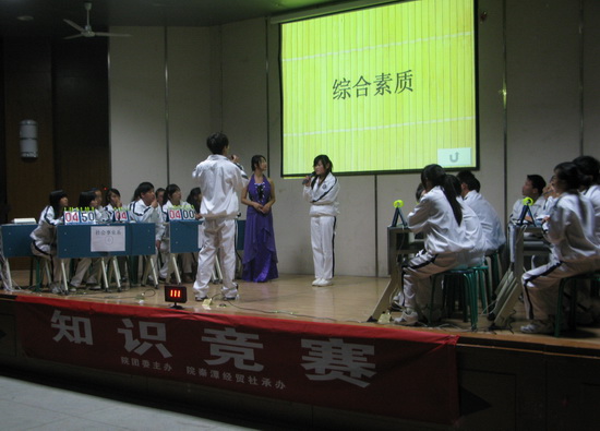 10月25日晚,由院团委主办、院秦潭经贸社承办的大学生入学教育知识竞赛在图文信息中心一楼报告厅举行。来自各系部的七支代表队为大家奉献了一场精彩比赛。